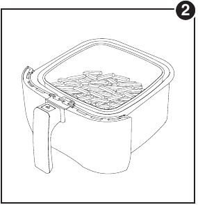 Note: Do not fill more than 4/5 full. Slip the frying pan back in place in the NuWave Brio Digital Air Fryer. Do not use the Base Tray without the Fry Pan Basket in it. (Fig. 2)