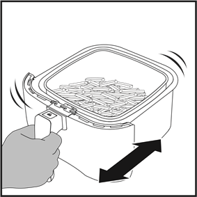 Some foods require shaking halfway through cooking. To properly shake the food, hold the handle, remove the Base Tray from the appliance and shake. Once the food has been adequately shaken, slide the Base Tray and Fry Pan Basket back into the NuWave Brio Digital Air Fryer.