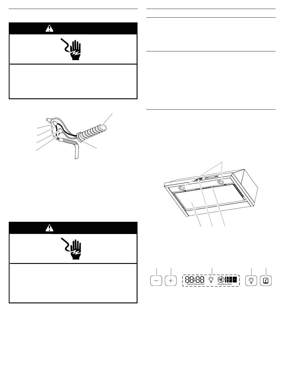 NOTE: Use only with range hood cord connection kits that have