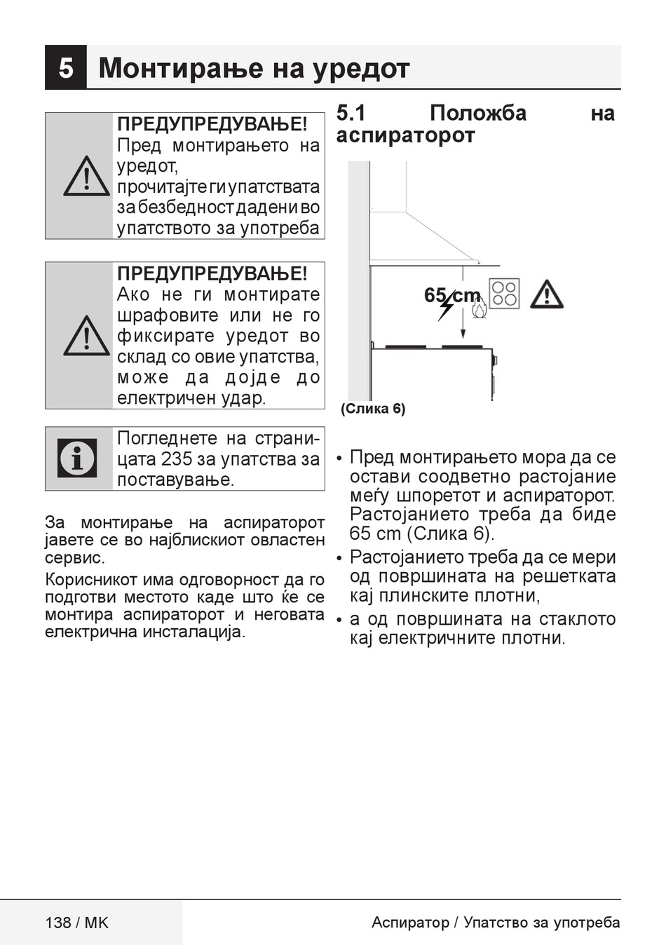 За монтирање на аспираторот