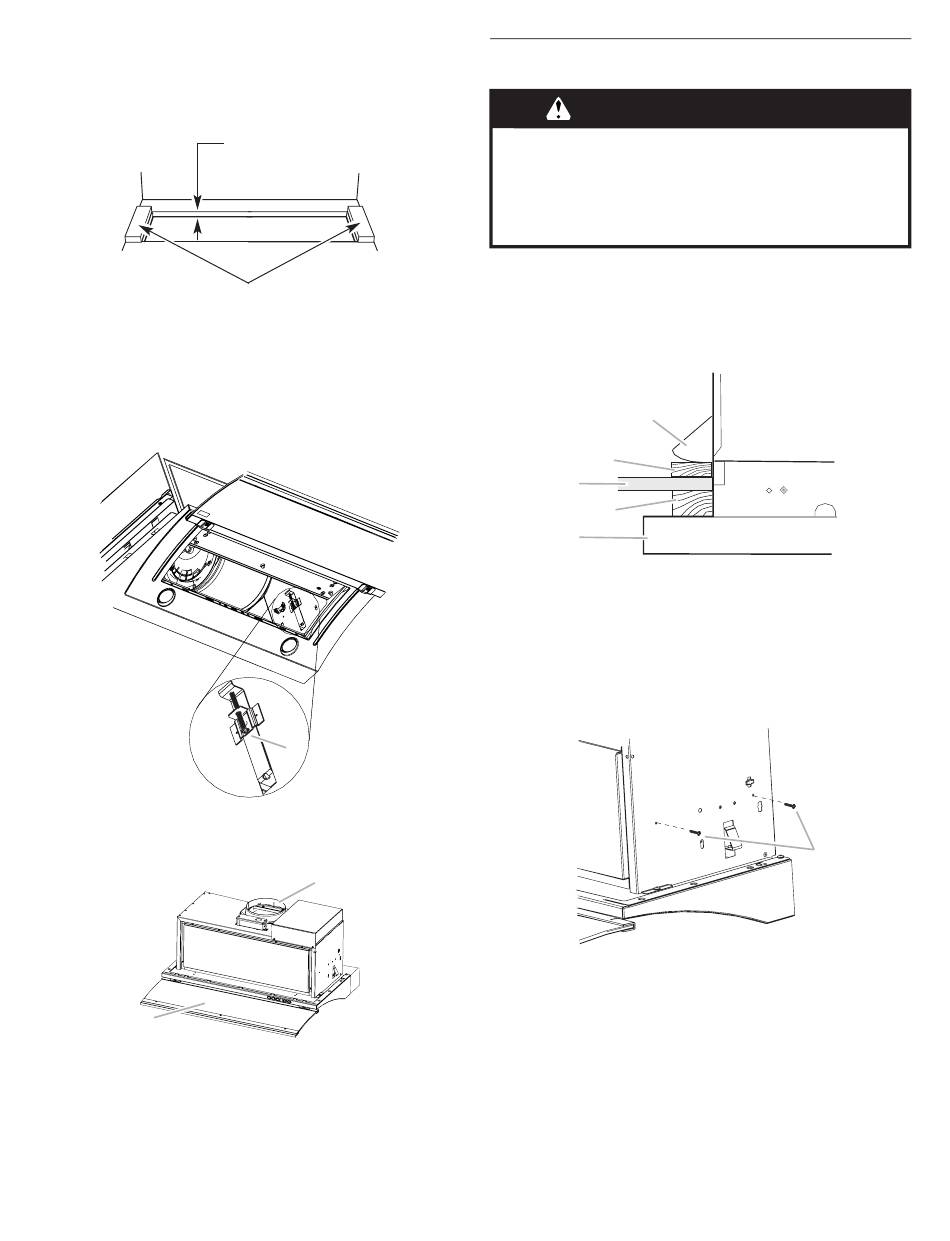 d'environ ¹⁄₄" (0,6 cm) entre les têtes des vis et la hotte pour