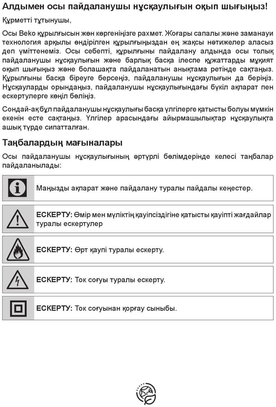 Алдымен осы пайдаланушы нұсқаулығын оқып шығыңыз!