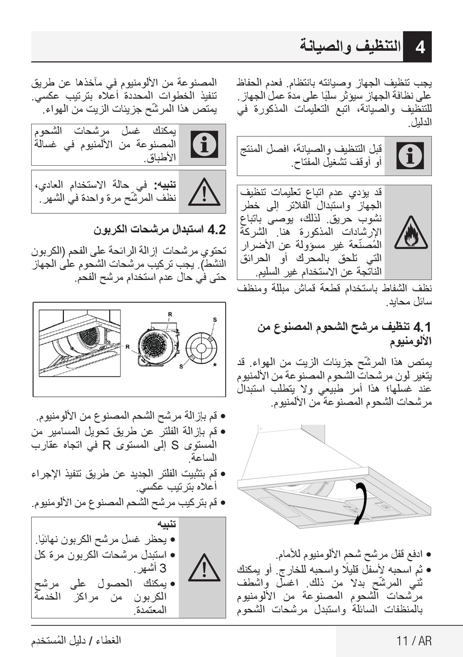 النشط). يجب تركيب مرشحات الشحوم على الجهاز