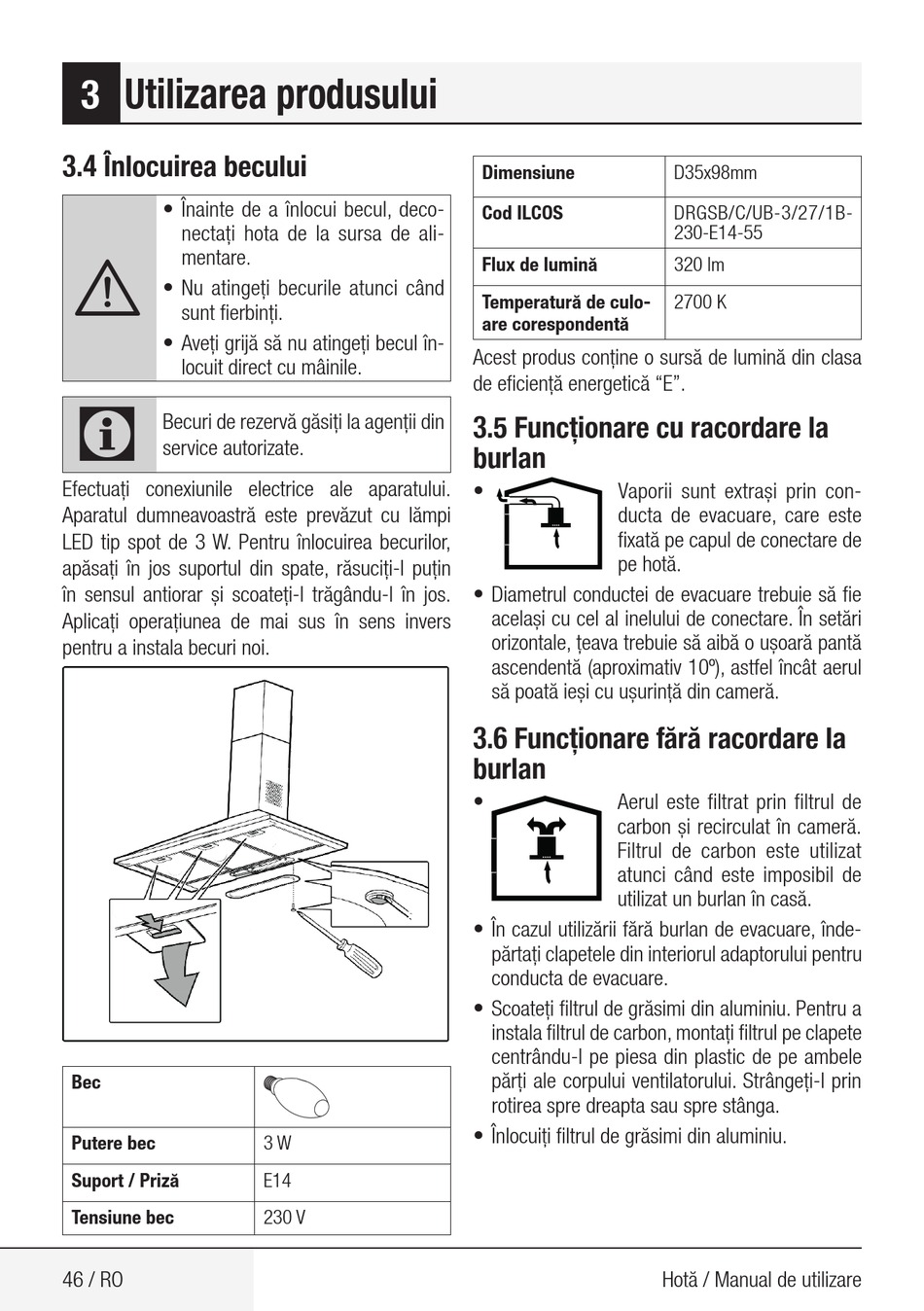 3.4 Înlocuirea becului