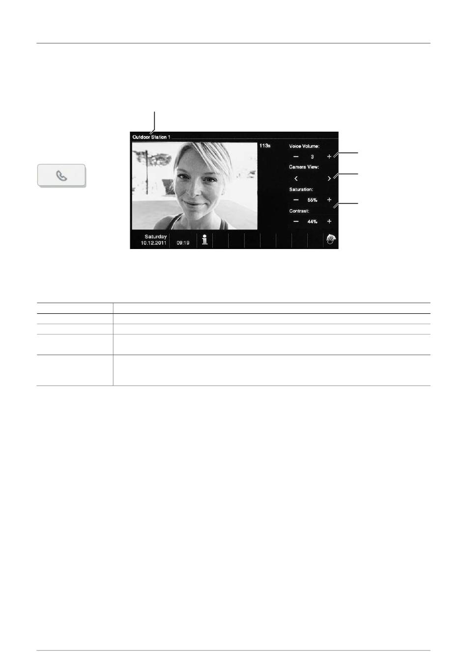 The following functions are available for setting up the voice and video connections (pressing the handset button):