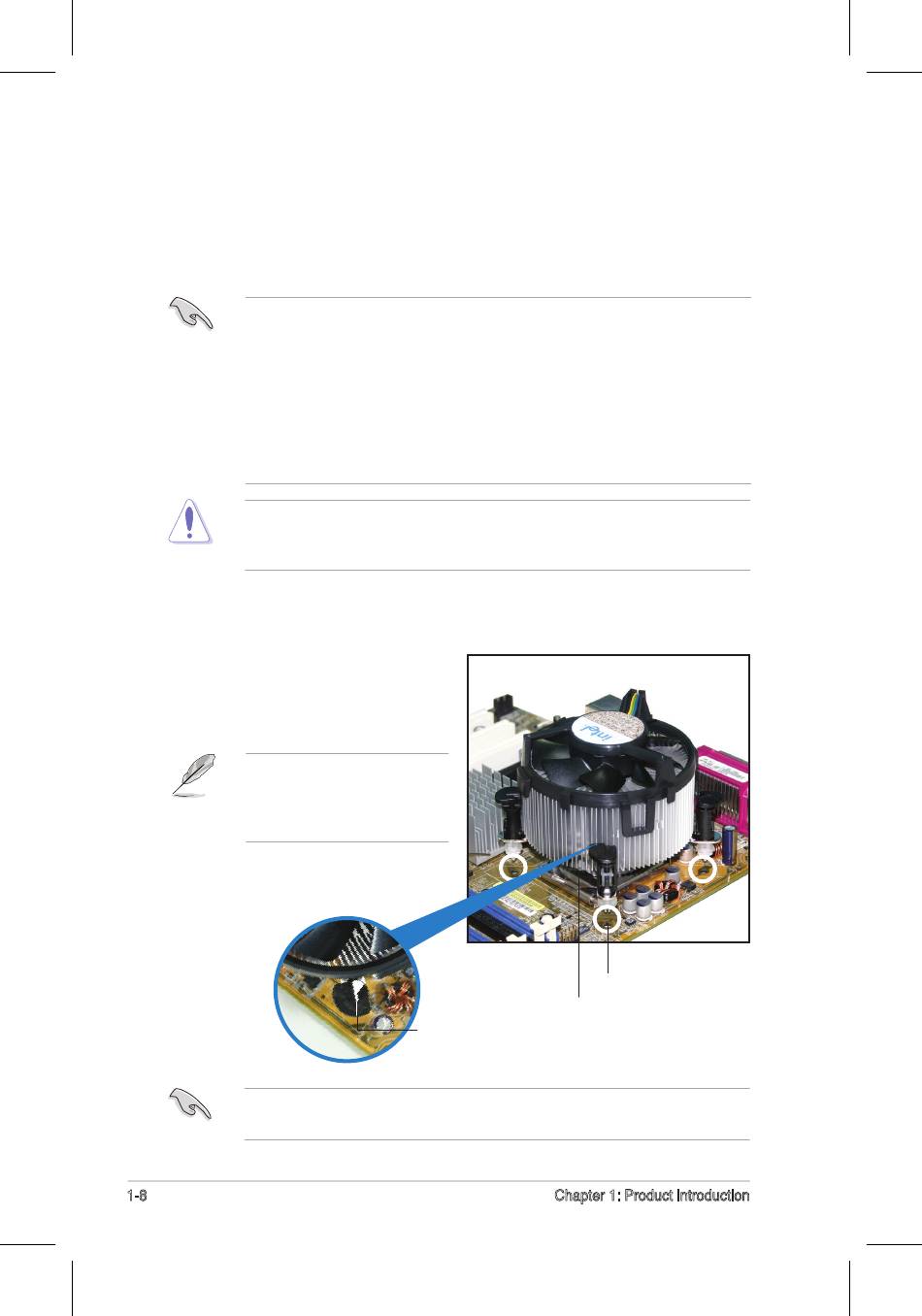 Install the motherboard to the chassis before you install the CPU fan and