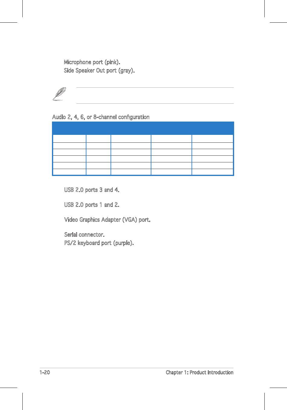 Refer to the audio configuration table below for the function of the audio
