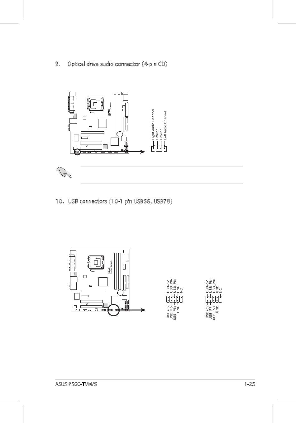 10. USB connectors (10-1 pin USB56, USB78)