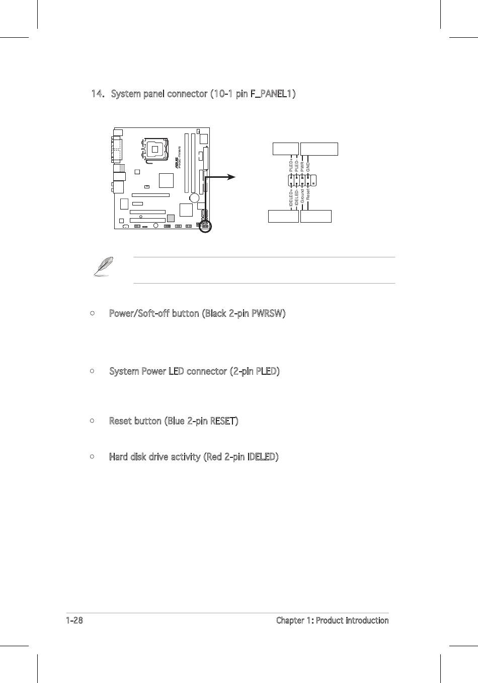 14. System panel connector (10-1 pin F_PANEL1)