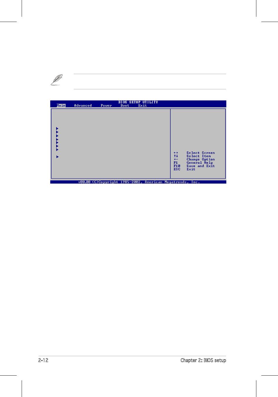 Refer to section "2.2.1 BIOS menu screen" for information on the menu