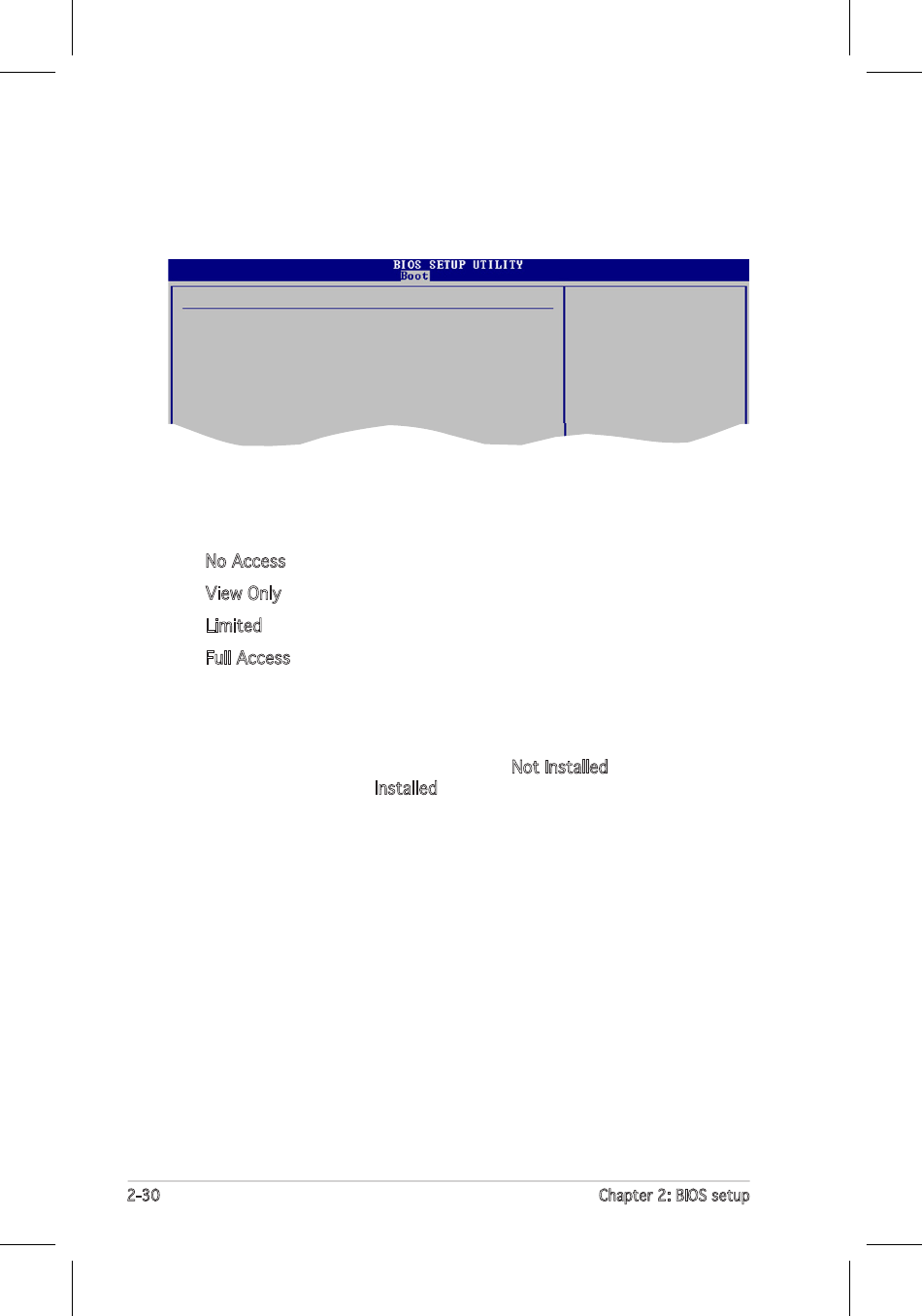 No Access prevents user access to the Setup utility.