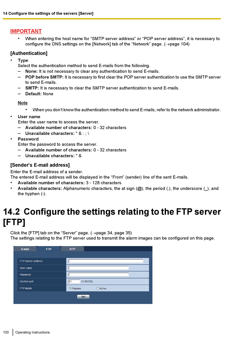 Click the [FTP] tab on the "Server" page. (®page 34, page 35)