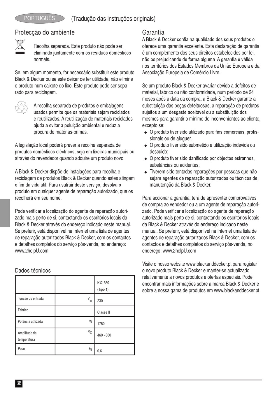 Black & Decker através do endereço indicado neste manual.