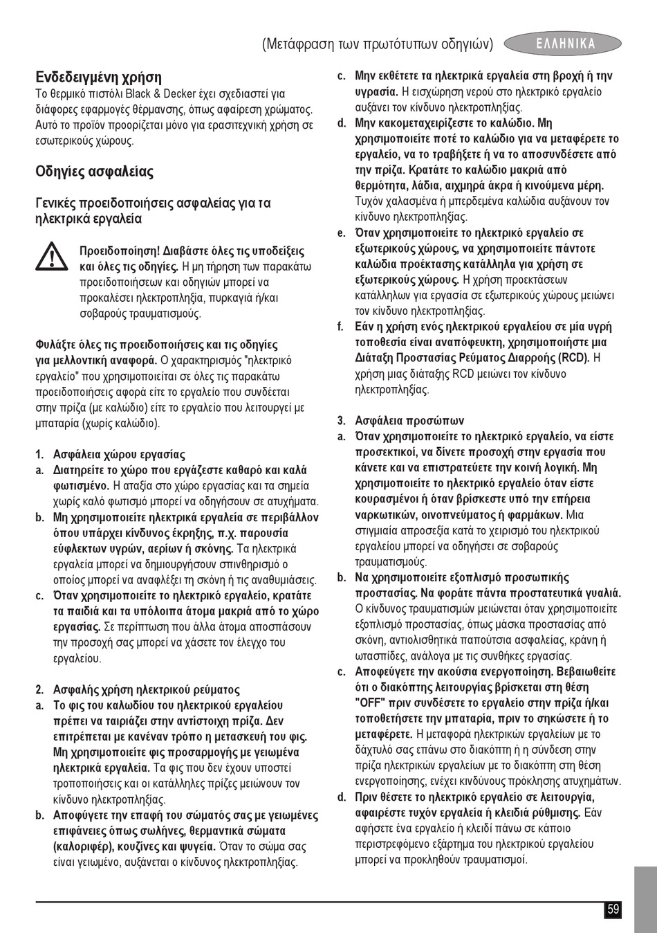 Προειδοποίηση! Διαβάστε όλες τις υποδείξεις