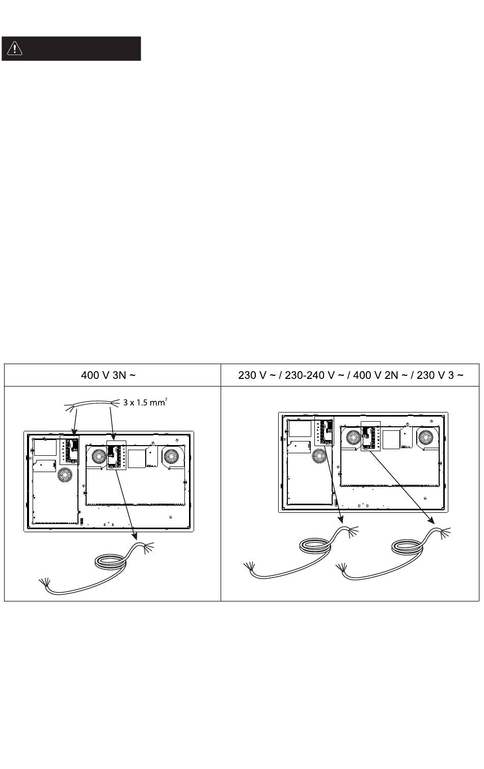 IMPORTANT: for 400 V 3N~ connection only, use only one power supply cable (connecting it to the