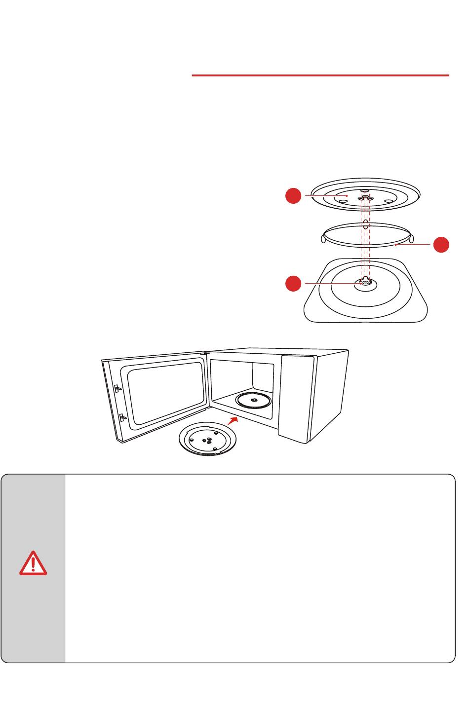2. Place the glass turntable ①on the turntable ring assembly③.