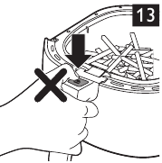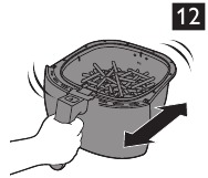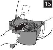 | I cannot slide the pan into the appliance properly. | There are too many ingredients in the basket. | Do not fill the basket beyond the MAX indication. | ||