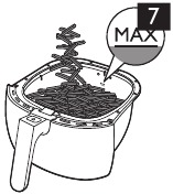 | The ingredients are fried unevenly in the airfryer. | Certain types of ingredients need to be shaken halfway through the cooking time. | Ingredients that lie on top of or across each other (e.g. fries) need to be shaken halfway through the cooking time. | ||