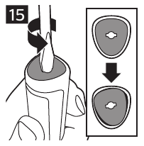 - Insert a screwdriver into the slot located in the bottom of the handle and turn counterclockwise until you see a gap between the bottom cap and the handle (Fig. 15).