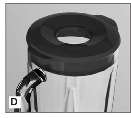 - Open the lid cap to add ingredients while the blender is running and drop ingredients through the opening (D).
