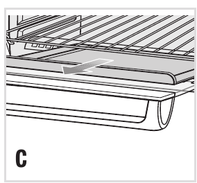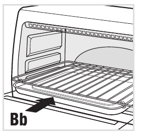- Open oven door and use the bake pan as a drip tray. Insert it under the slide rack on the rack support rails (Bb).