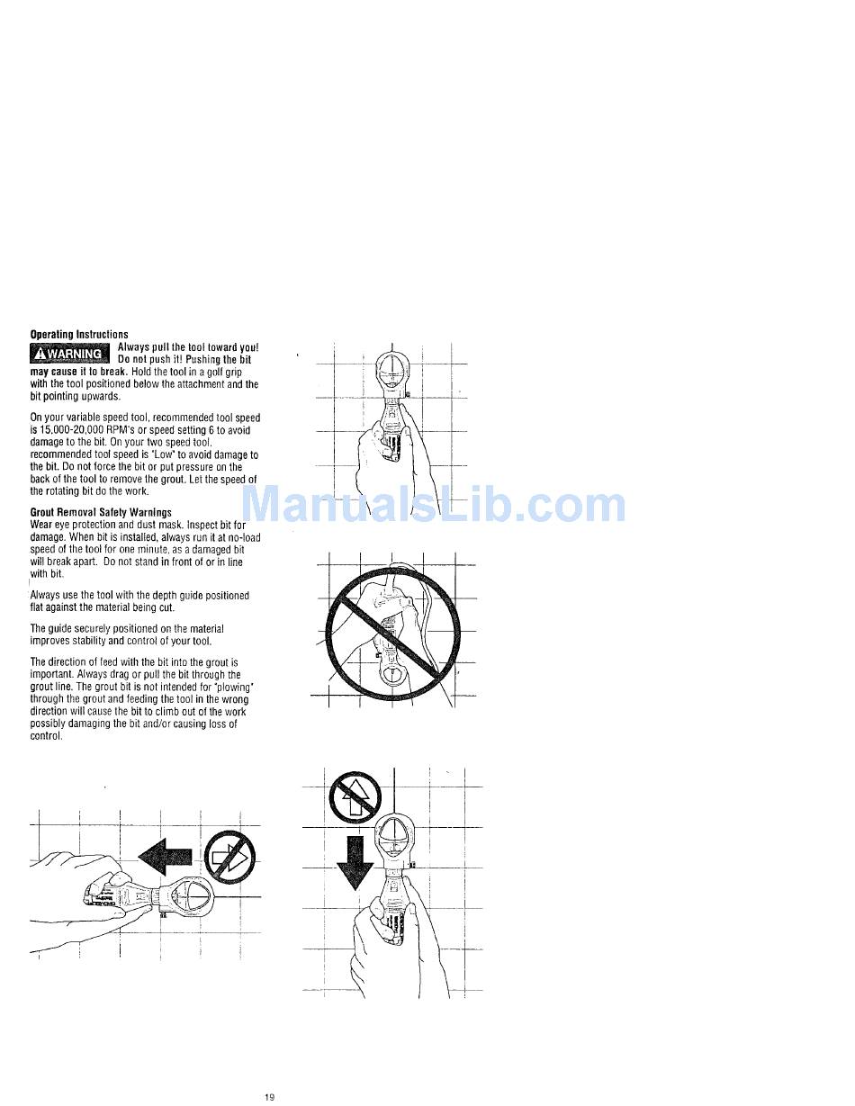 back of the tool to remove the grout. Let the speed of