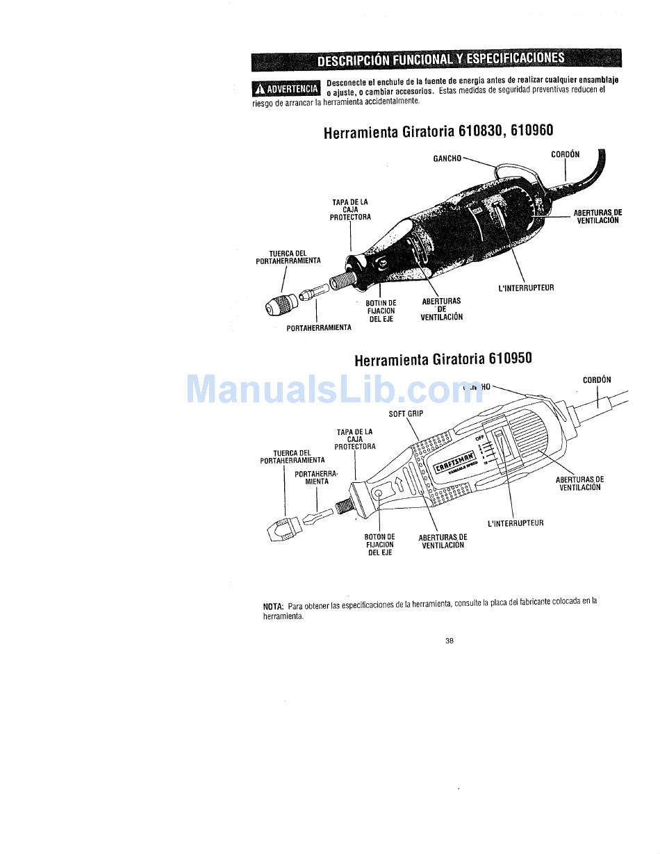 NOTA: Paraobtener lasespecilicacionesde la herramienta,consultela placadelfabricantecolocadaen la