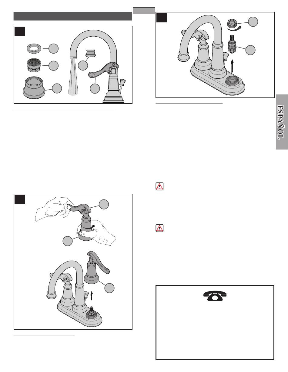agua y elimine la presión. Quite las manijas (vea el Paso 13). Desenrosque la