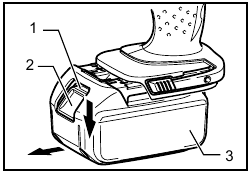 - To remove the battery cartridge, slide it from the tool while sliding the button on the front of the cartridge.