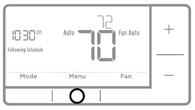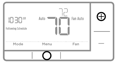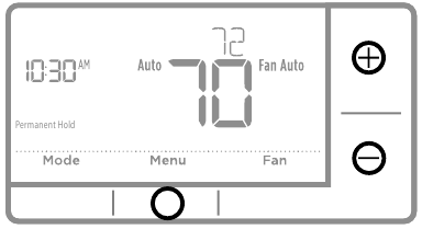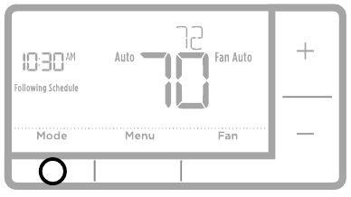 | Heating or cooling system does not respond | - Press System to set system to Heat. Make sure the temperature is set higher than the Inside temperature.