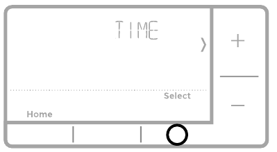 - Set the time. Press + or - to adjust the hour. Press Select.