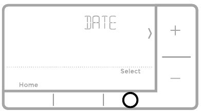 Press + or - to adjust the day. Press Select.