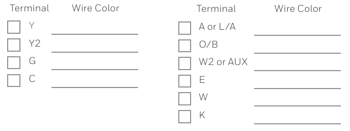 If there are wires in terminals that are not listed, you will need additional wiring support. Visit resideo.com to find out if the thermostat will work for you. - Disconnect the wires and remove the old wall plate.