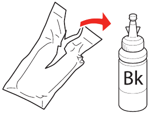 Note: Do not open the ink bottles until you are ready to fill the ink tanks. The ink bottles are vacuum packed to maintain reliability. Ink bottle design may vary.