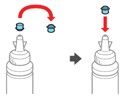 Be sure to close the bottle cap tightly, or ink may leak. - Fill the tank using all of the ink in the bottle.