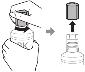 Note: Refer to the color-coded sticker on the ink tank unit to identify the color of each tank. - Unpack the black (BK) ink bottle. Hold the ink bottle upright and slowly turn the bottle cap to remove it.