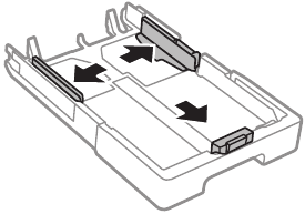Note: Make sure the paper is loaded against the front edge guide and not sticking out from the end of the cassette. - Slide the side edge guides against the paper but not too tightly.