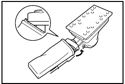 After emptying the dust bag, insert the hook on the dust nozzle into the rectangular hole on one side of the dust bag frame until it clicks into place on the oush the button.