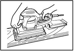 Turn the tool on and wait until it attains full speed. Then gently place the tool on the workpiece surface. Keep the base flush with the workpiece and apply a light pressure on the tool.
