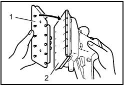 Place the punch plate (optional accessory) over the paper so that the guide of the punch plate is flush with the sides of the pad. Then press the punch plate to make holes in the paper.