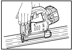 - Do not actuate the tool unless the tool is placed firmly against the workpiece. If the tool is not in contact with the workpiece, the fastener may be deflected away from your target.