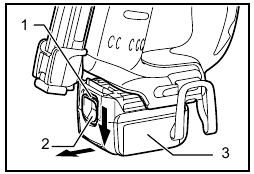 - To remove the battery cartridge, slide it from the tool while sliding the button on the front of the cartridge.