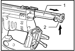 Press the locking lever on the rear of the sub magazine and slide the sub magazine backward.