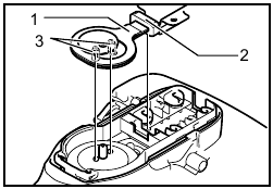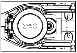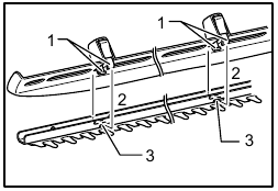 Put the removed sponge in the same position as the old one. Make sure that the sleeves provided with the new shear blades are put on the pins of the blade. Place the new shear blades on the tool so that the pins fit in the holes of the gear. If the sleeves on the pins come off mistakenly, put them into the holes of the gear beforehand.