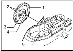 The washer underneath the gear may come off by mistake when removing the gear. In this case, return it to the original position as it was installed.
