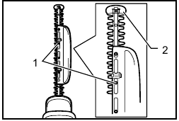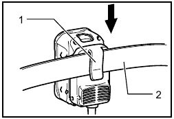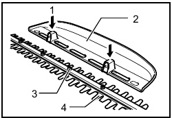 ![Makita - BUH550 - Fitting the blade cover onto the shear blades Fitting the blade cover onto the shear blades]()