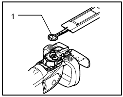 Install the plate, under cover on the tool. Tighten the screw firmly.