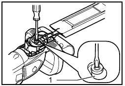 Insert the top end of slotted bit screwdriver into the notch in the tool and remove the holder cap cover by lifting it up.