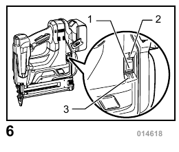 - Always be sure that the tool is switched off and the battery cartridge and nails are removed before attempting to perform inspection or maintenance.