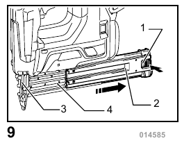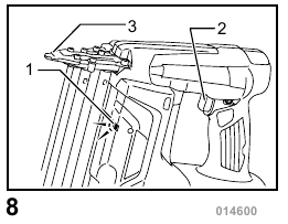 - Always make sure that your fingers are not placed on the trigger and the battery cartridge is removed before loading nails.